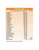 L-Istidina, L-Ornitina, L-Cistina, L-Triptofano, L-Serina, L-Fenilalanina, Agenti antiagglomeranti: Biossido di silicio, Esteri di saccarosio degli acidi grassi; L-Tirosina, Colorante: Estratto di paprica (nella formulazione gusto arancia) N-Acetilcisteina, Sodio jaluronato, L-Citrullina, Carnitina, Taurina, LMetionina, Zinco, Coenzima Q10; Edulcorante: Sucralosio, Vitamina B6 . Allergene in grassetto.